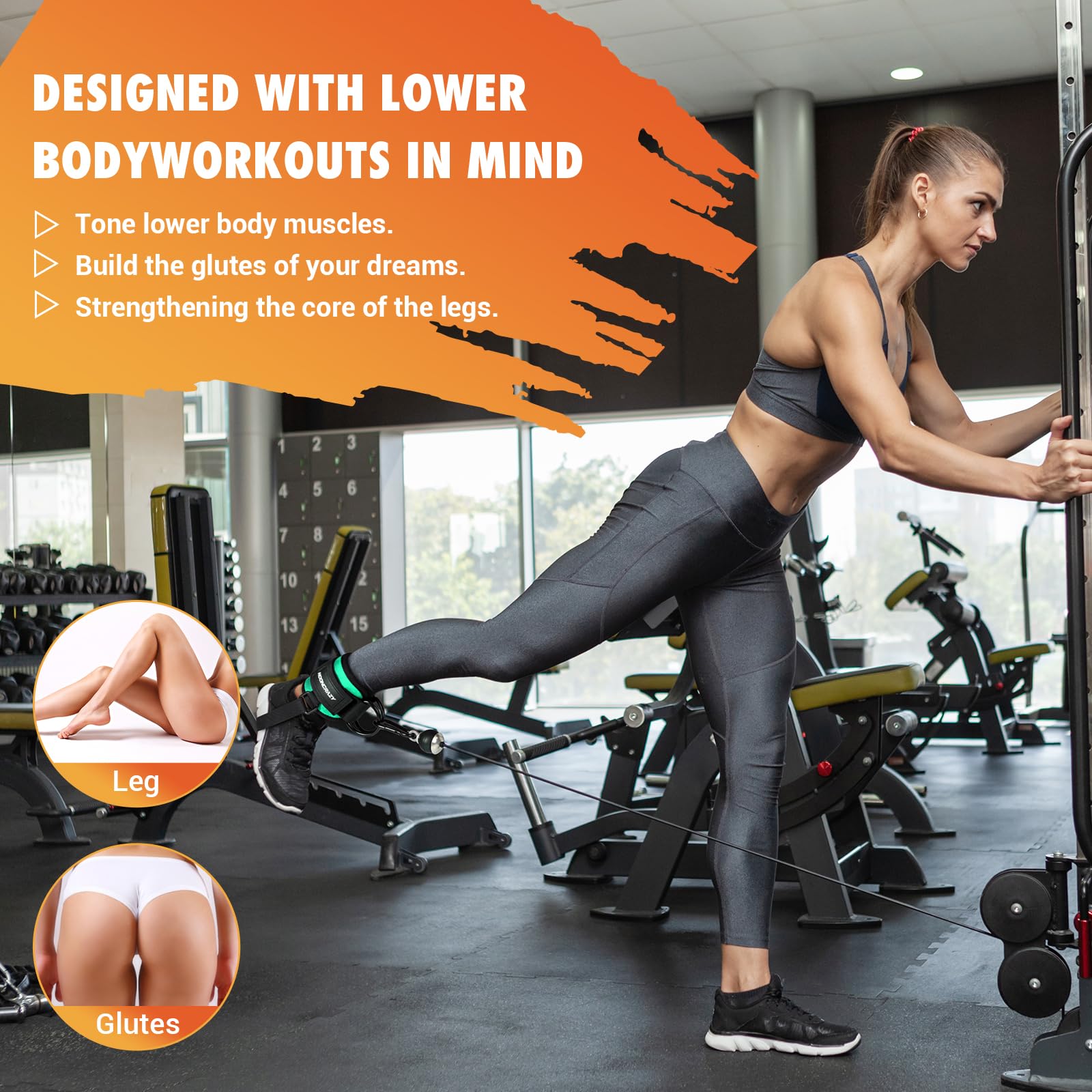 - [ANKLE STRAPS FOR YOUR DREAM BODY] Our ankle straps will help you tone lower body muscles,Intensifies Your everyday workouts,strengthen your leg core in no time!Plus, cable ankle straps are lightweight and portable, making them the perfect addition to your gym bag. Get ready to give your booty the boost it deserves and become the envy of gym-goers everywhere.