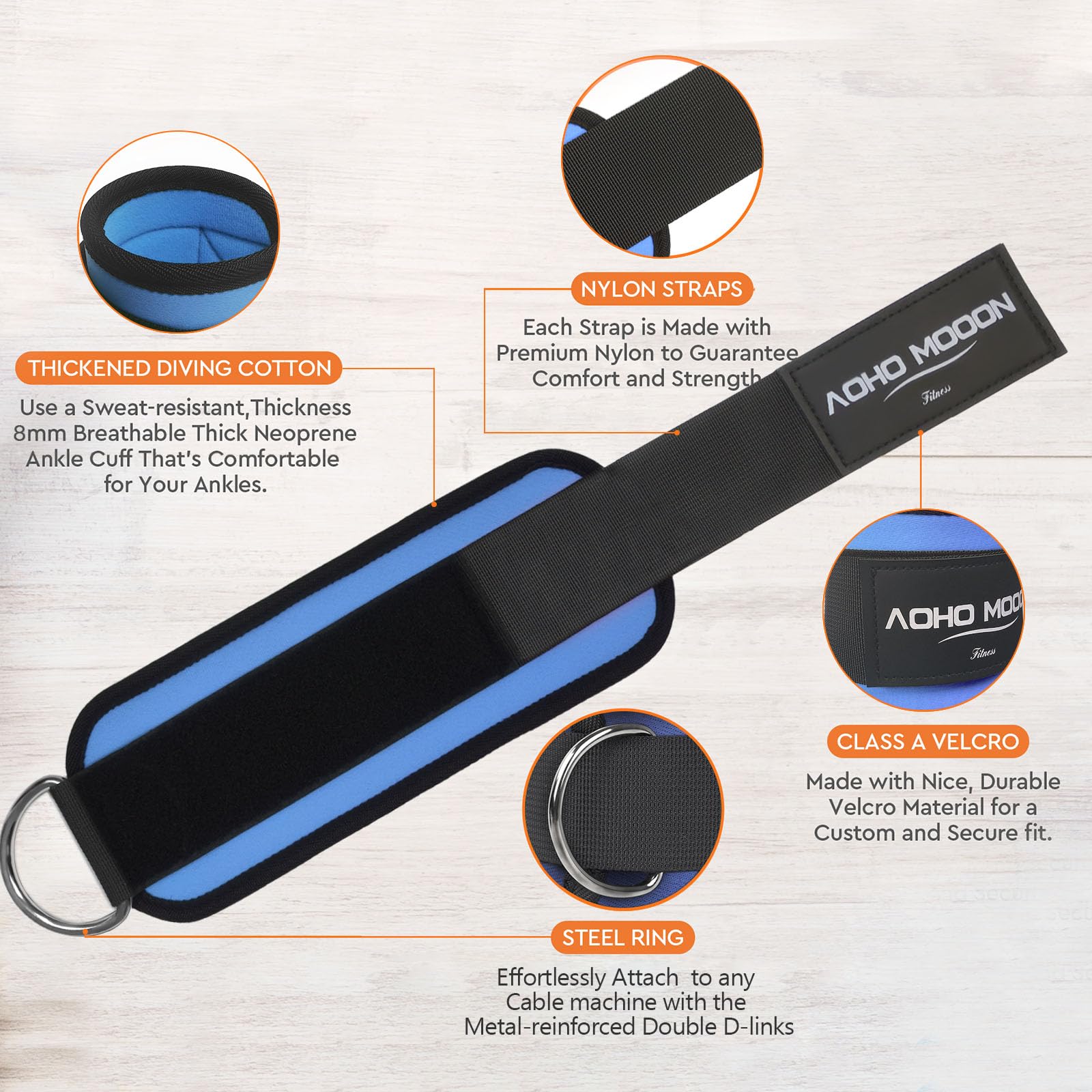 AOHO MOOON (Pair Comfortable Adjustable Ankle Straps for Cable Machines Women, Gym Workout Leg Straps, Ankle Cuffs for Glute Workouts, Foot Straps for Kickback, One Size Fit All with D Ring