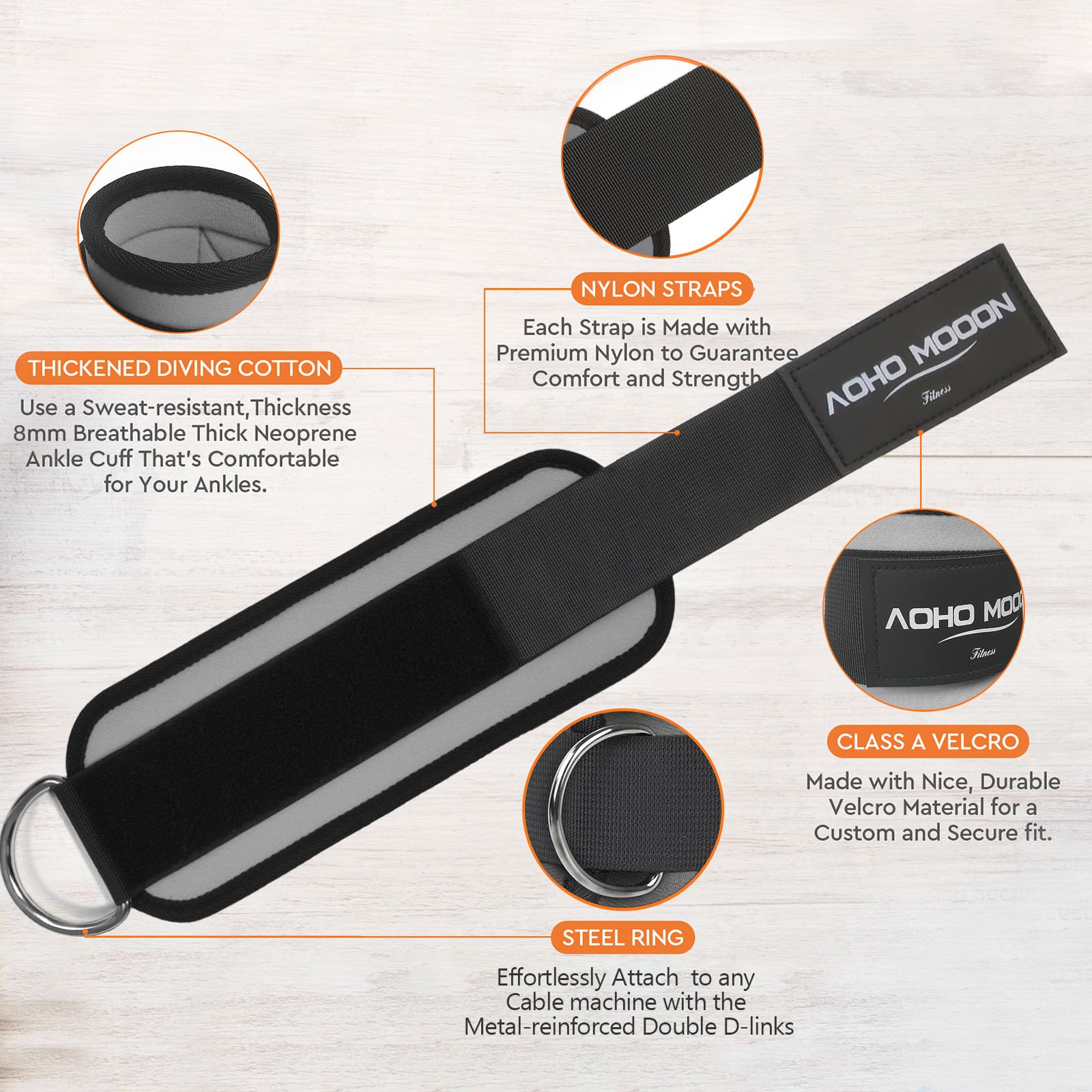 AOHO MOOON (Pair) Comfortable Adjustable Ankle Straps for Cable Machines Women, Gym Workout Leg Straps, Ankle Cuffs for Glute Workouts, Foot Straps for Kickback, One Size Fit All with D Ring