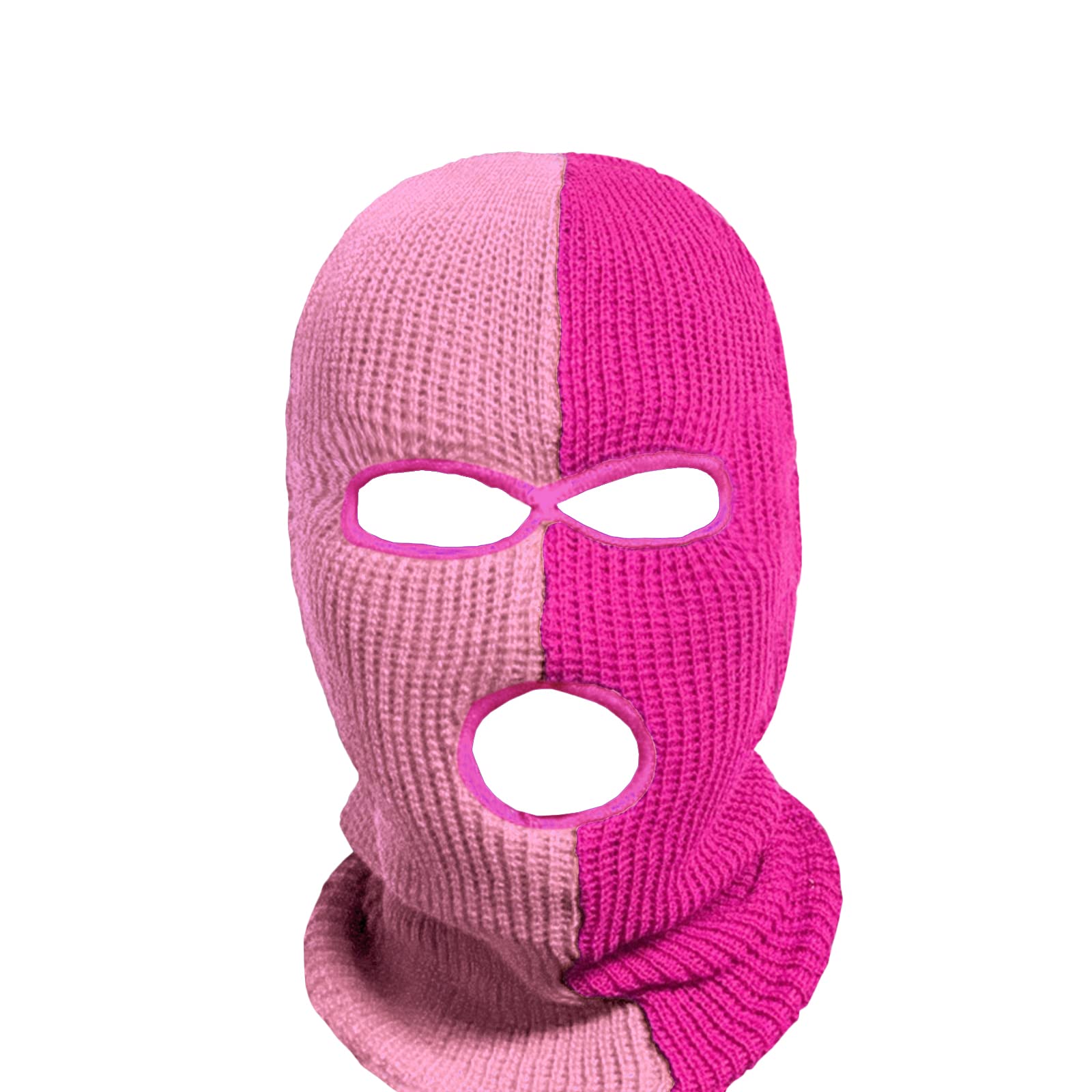 aoozleny 3-Hole Two Color Knitted Hat Ski Mask Balaclava, Full Face Mask for Cycling/Skiing Winter Outdoor Sports (Pink+Rosered)