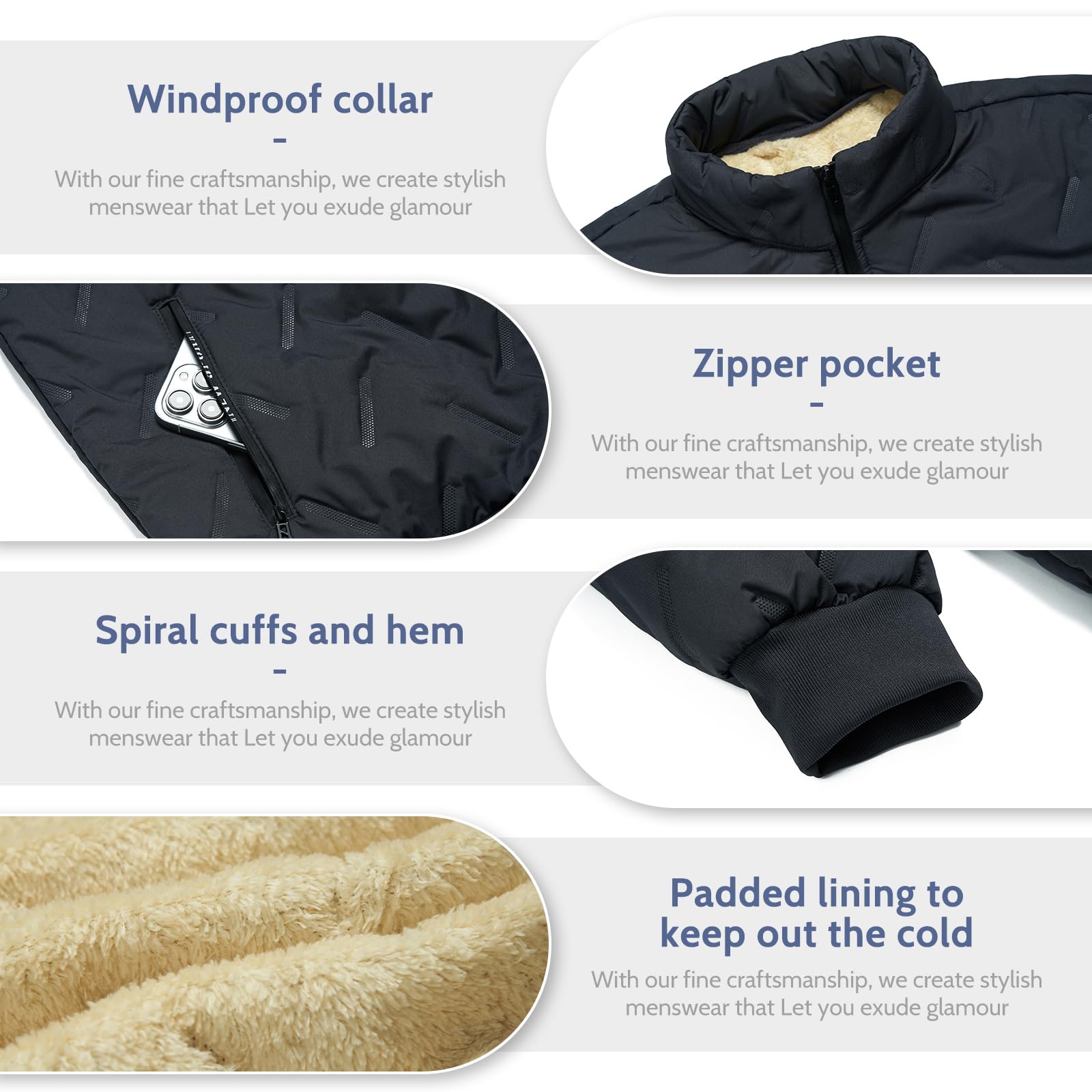 - Features: Mens fleece warm ski jackets full zip winter coat, designed with 2 huge zip side pockets, 2 deep secure inner pocket, you can keep your items much safer.