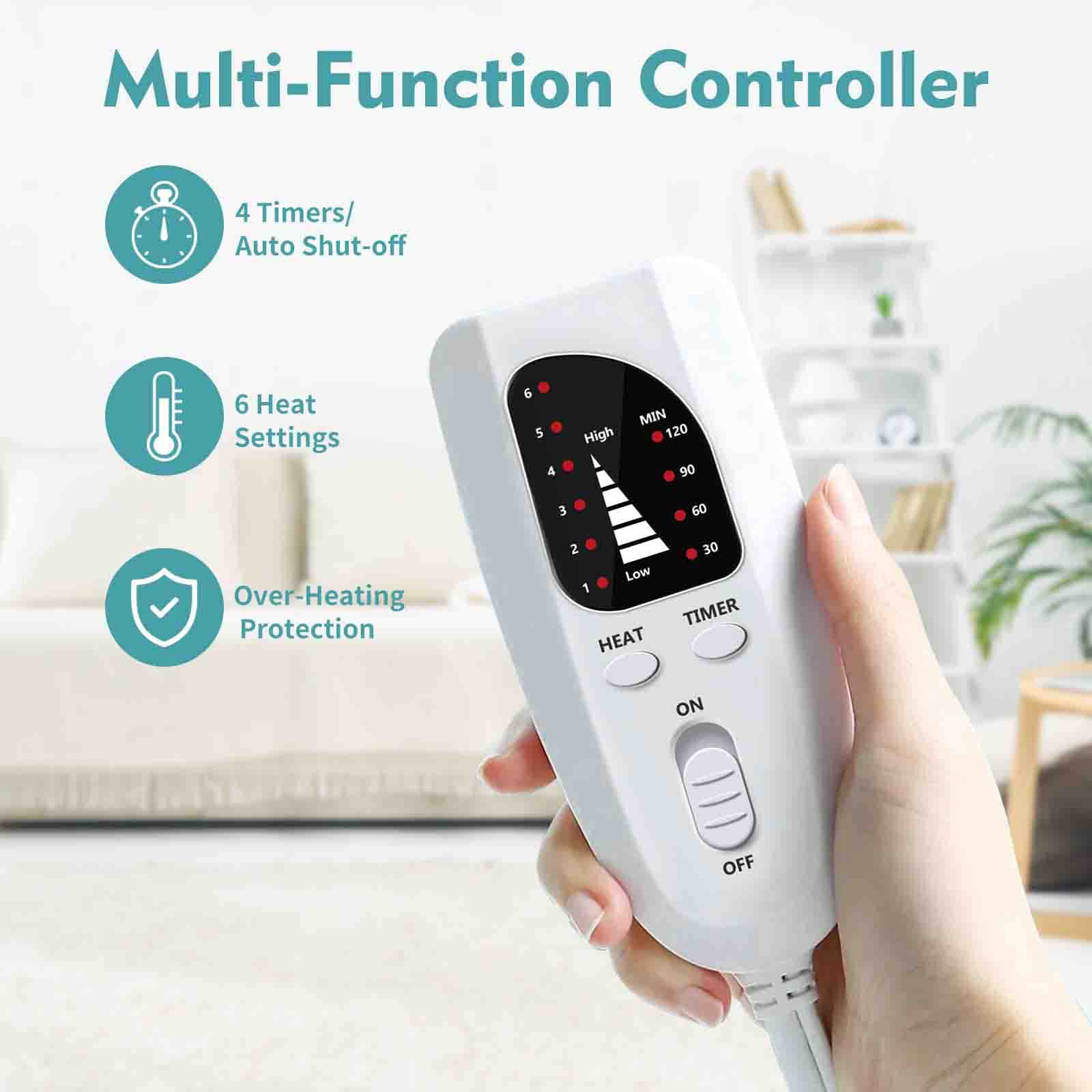 - 【Fast Heating with 6 Heat Settings and 4 Auto-off Timers】The most suitable temperature for the human body ranges in 6 grades from 40℃/104℉, to 60℃/140℉, allows you to choose the most comfortable temperature for neck shoulder heating therapy. 4 Timers better serve you with a wide range of auto-off settings from 0.5h, 1h, 1.5h, and 2h, expands your different need of using the heating pad for neck and shoulders.