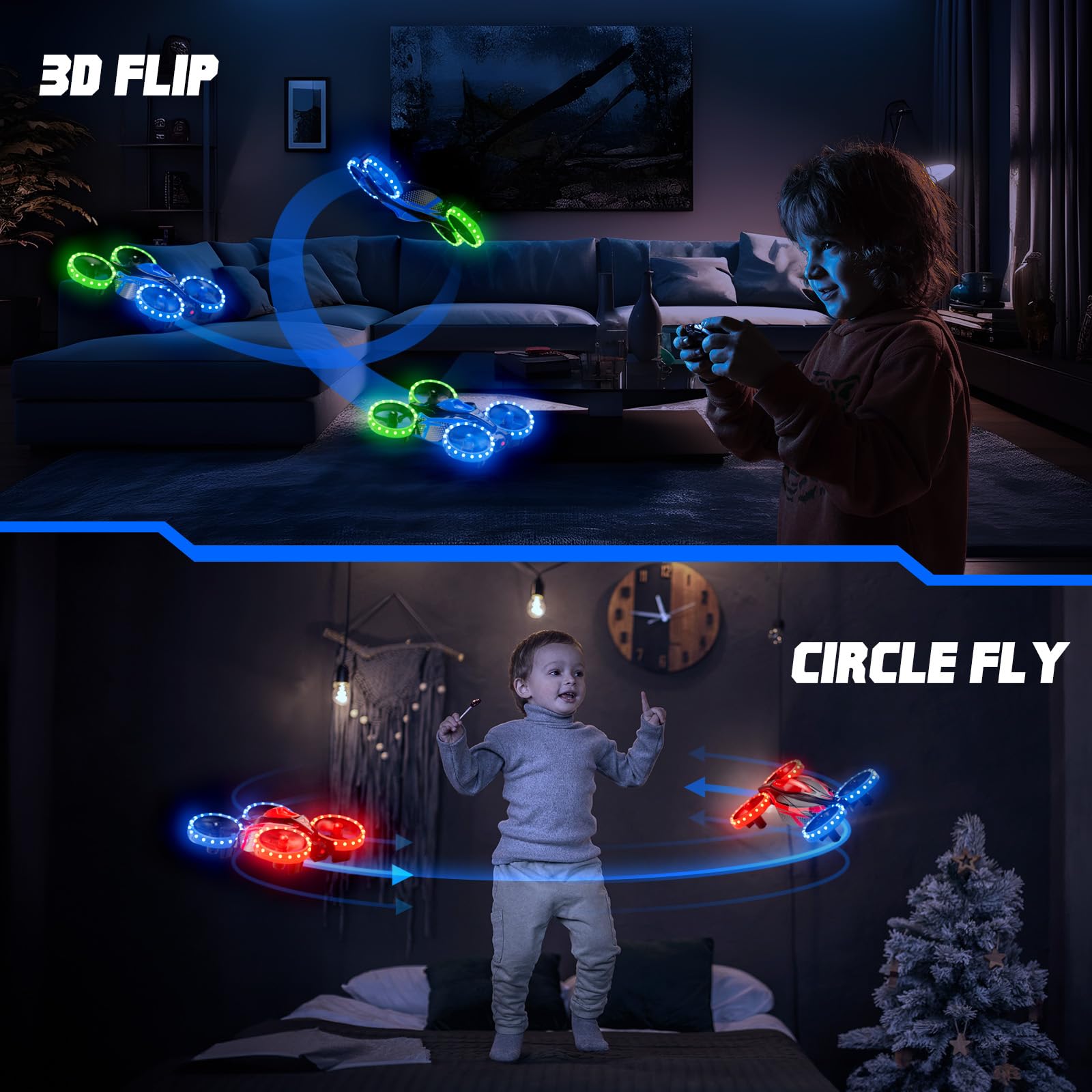 - Colorful Dazzling LED Lights - Elevate your drone with the upgraded featuring mesmerizing LED lights. Red drones radiate a captivating blend of red and blue lights, while blue drones showcase a mesmerizing fusion of blue and green lights, transforming night battles into a mesmerizing spectacle. Idea choice for Birthday, Christmas gifts.