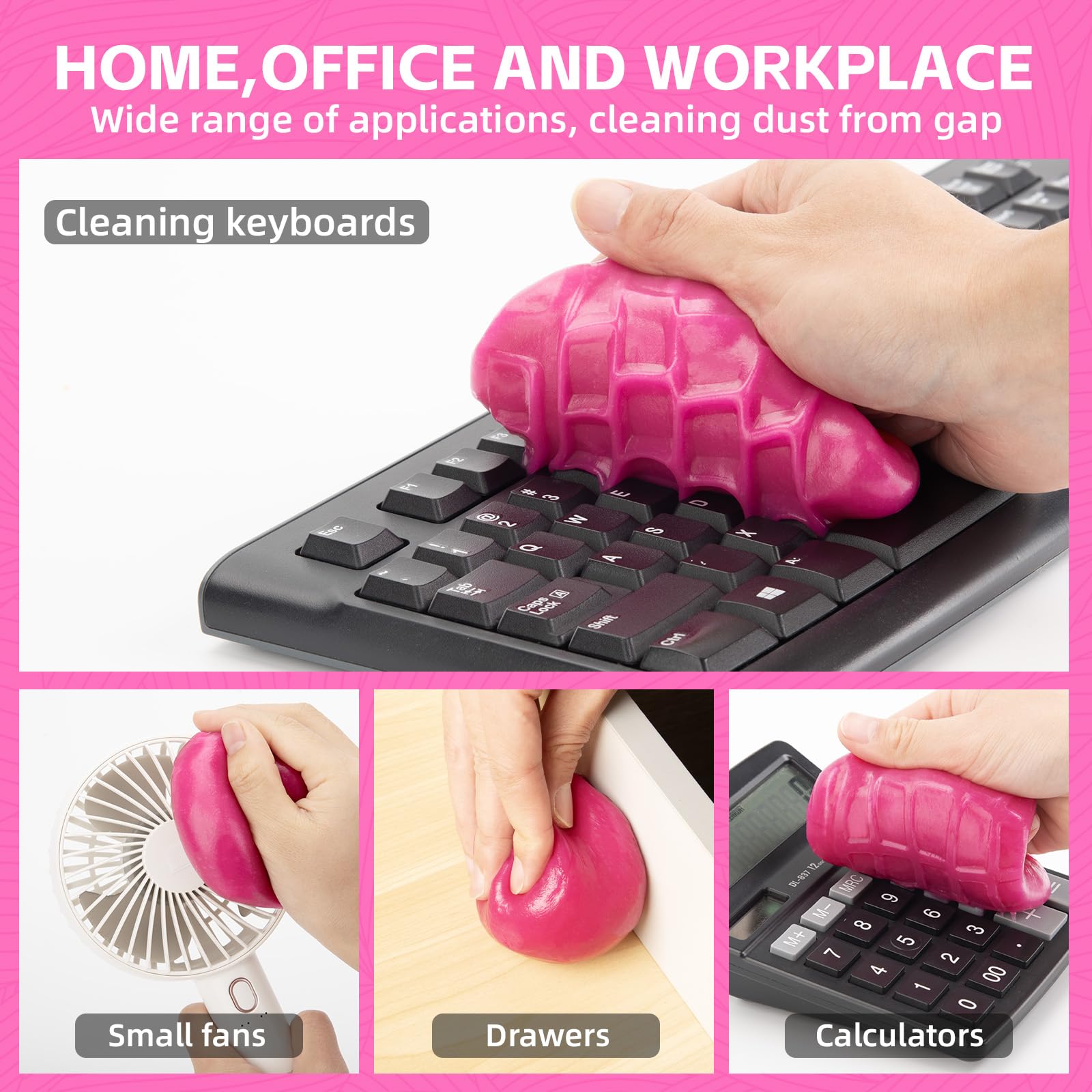 ASFSKY Reusable Car Cleaning Gel with Strong Adhesion - Ideal for Car Interiors (Air Vents, Dashboards, Seat Gaps), Electronics (Keyboards, Laptops, Game Consoles), Home Appliances (3, Rose Red)