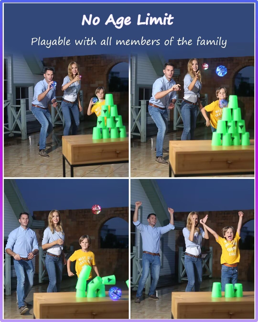 - Indoor & Outdoor Toys: The magic hover ball built-in RGB Light, colors are vibrant look like a neon shooting star when you launch it across the sky. Very fun to play outside especially in the night have a lots of eyes on it. Unique indoor outdoor games, helps to move around and fun, multiplayer will be more interesting.