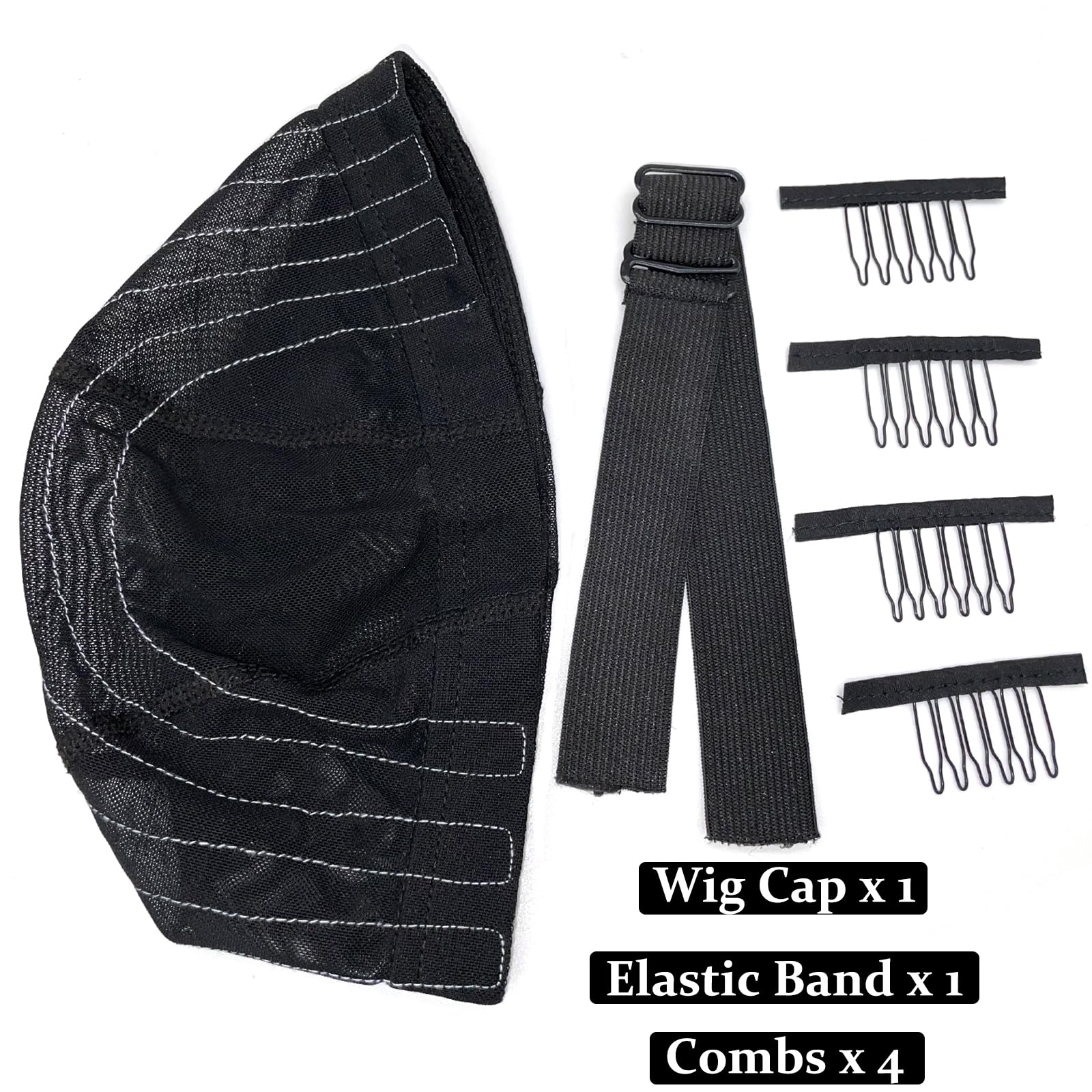 This kit includes Wig Cap*1, Elastic Band*1, and Combs *4.