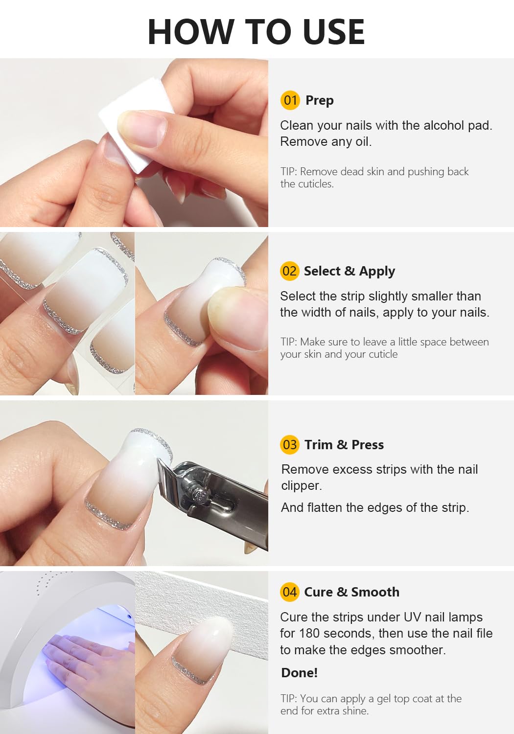 - 【Salon-Quality】- Our semi cured nail strips are cured 60% in advance to keep nail strips soft and flexible. Once cured under a UV or LED lamp, you can enjoy salon-quality nails for up to 2 weeks. Kind reminder: not suitable for nail extension.