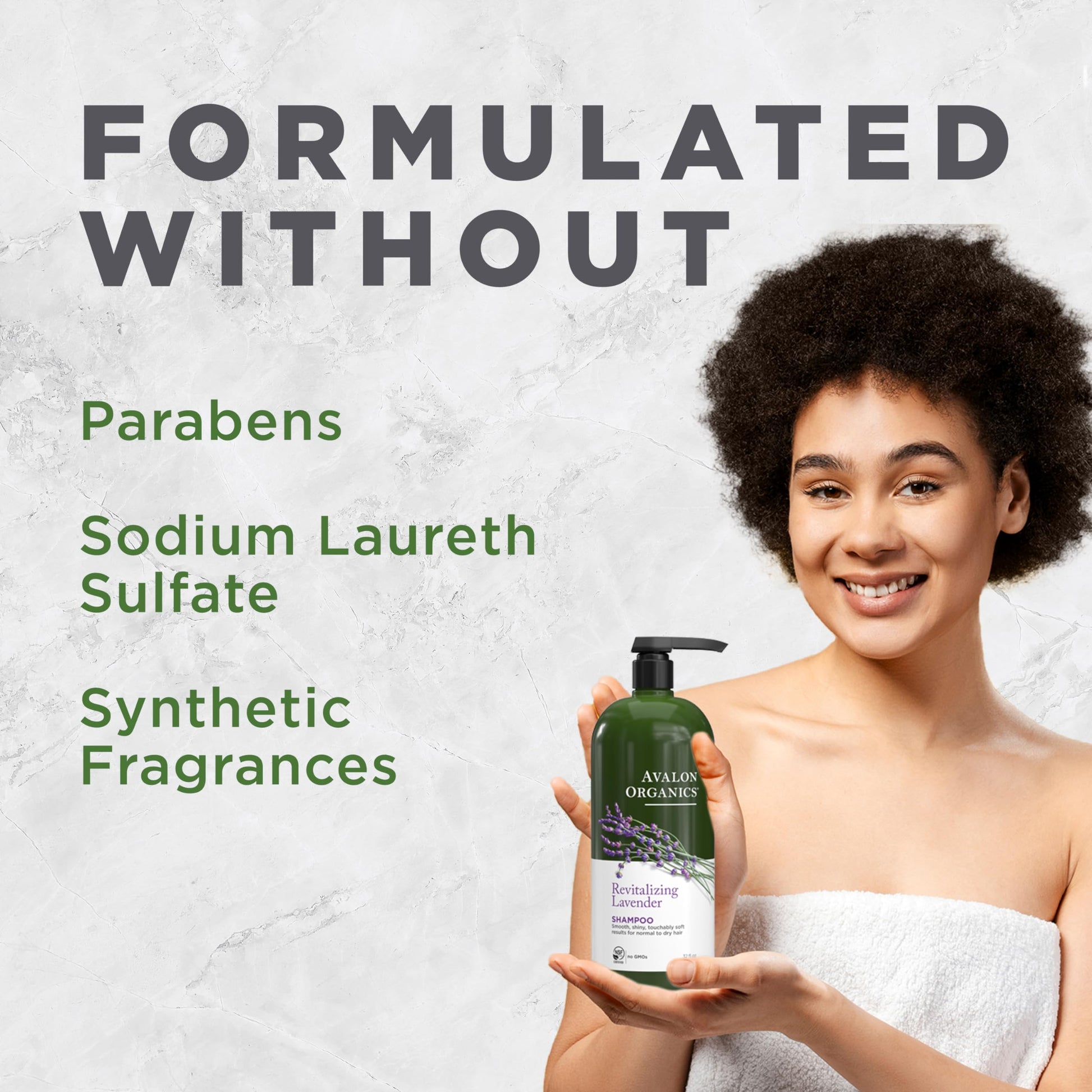 - Formulated Without: This shampoo is packaged in a 100% recycled bottle and is formulated without parabens, sodium laureth sulfate, synthetic colors, or synthetic fragrances