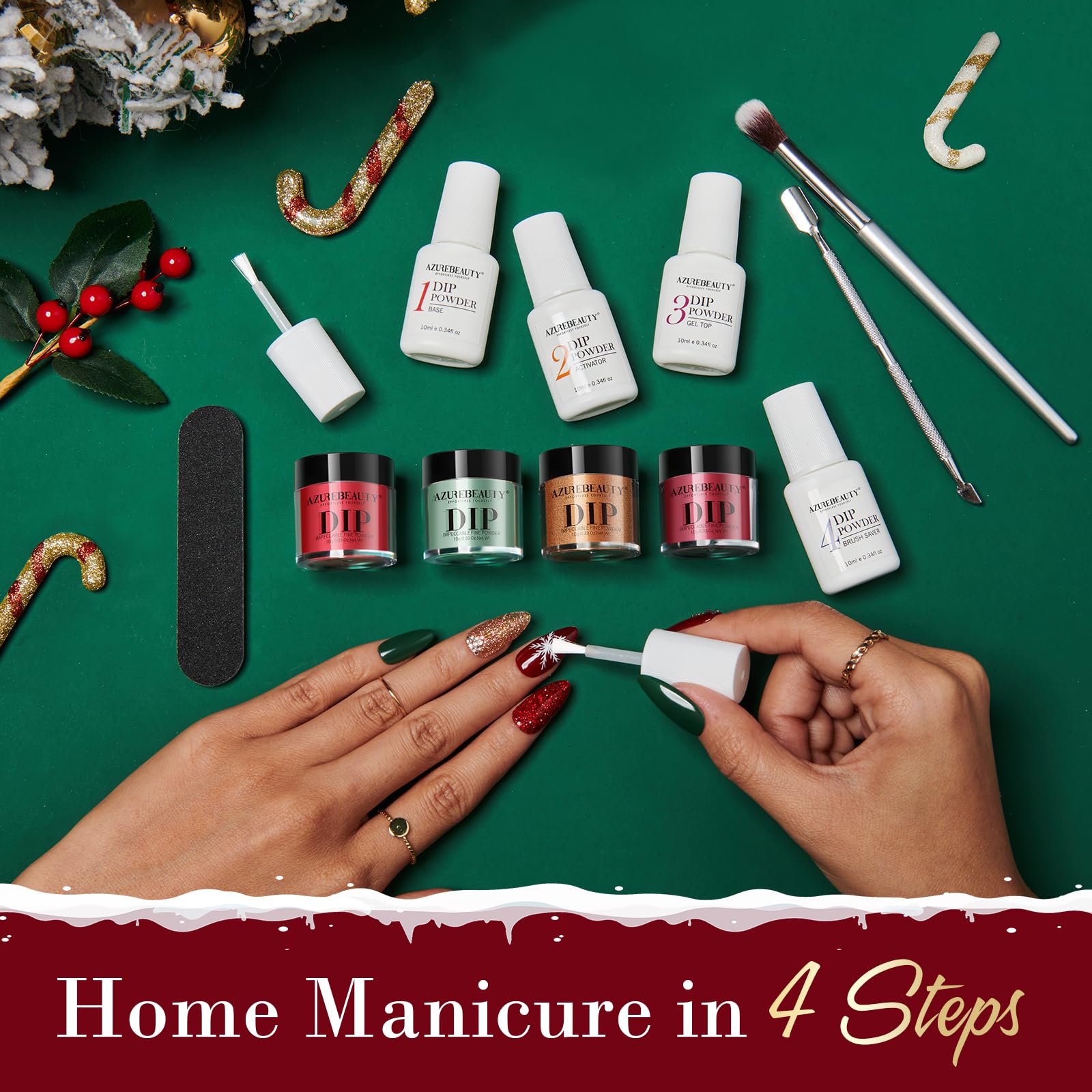 - No Need Nail Dryers & Easy Application: AZUREBEAUTY dip powder nail starter kit doesn't need an LED nail lamp to cure, dry faster, and is skin-friendly, which can avoid turning skin black and damaging nails. Easy to apply, fits for both beginners and professional DIY nail salons at home