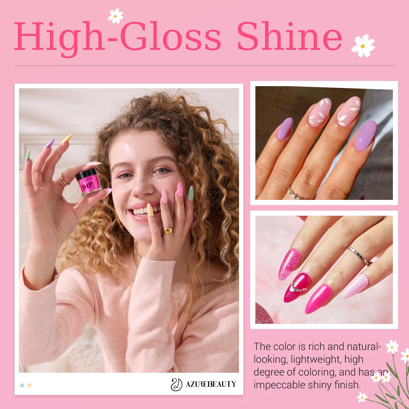 - 🌈【Long-Lasting & High Gloss】Immerse yourself in long-lasting beauty with the AZUREBEAUTY Dip Powder Nail Kit, which is not easy to chip and fall off. If used correctly, it will keep your manicure looking beautiful for about 21 days. The new dip powder color is crystal clear, mysterious, and deep. (Warm reminder: The effect of dipping powder varies from person to person. The best effect is to apply 2 to 3 layers of powder when using it.)