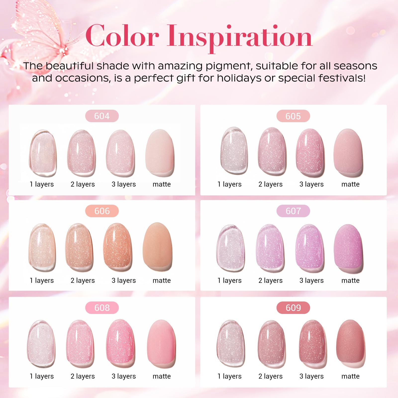 - 【Perfect Dip Powder Set】: Sheer 6 Pcs Peach Pink translucent nail dip powder feels and looks natural, is lightweight, and has impeccable shine. It looks just like your original nails, but the pink inside will make your original nails look shinier and healthier. A clear dip powder set is ESSENTIAL for everyone! Clear nail powder can be used as the base layer and colors layer