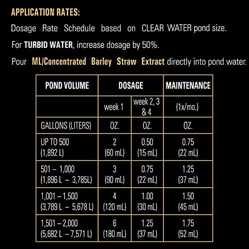 - CONCENTRATED FORMULA: One capful treatment has a stronger impact than a barley straw bale when it comes to keeping your water clear; There is no residue to mess up a waterfall feature and is especially helpful where bottom drains are present