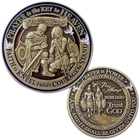& Emblem - Prayer Challenge Coin: Faithful Armor of God, Spiritual Journey Keepsake, Antique Finish, Hand-Painted Colors, Inspirational Gift for Christians, Collectible Commemorative Token