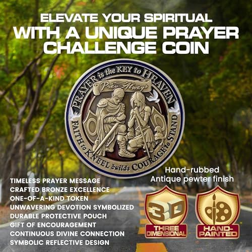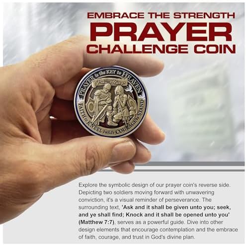 - Double-Sided High-Relief Artwork: Side one depicts prayer, while side two showcases the soldiers walking forward, accompanied by inspiring messages like 'Prayer is Power' and 'Seek, and Ye Shall Find.'