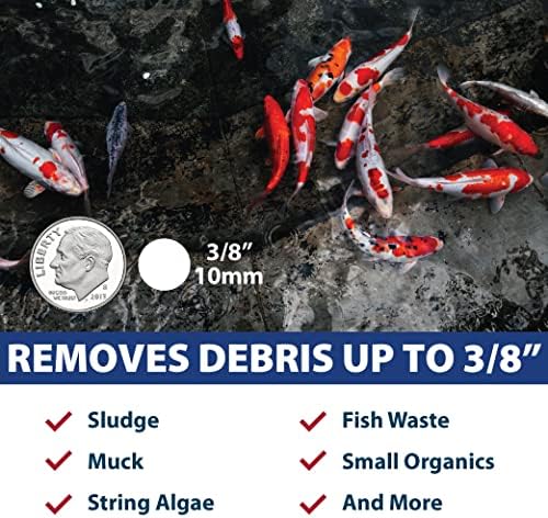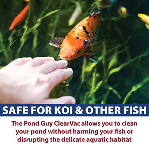 The Pond Guy ClearVac Pond Vacuum, Powerful Motor Quickly Removes Sludge & Debris, Dual Chamber Reservoir for Nonstop Use, 4 Interchangeable Nozzle Attachments, 5 Extension Tubes, 8 Ft Discharge Hose
