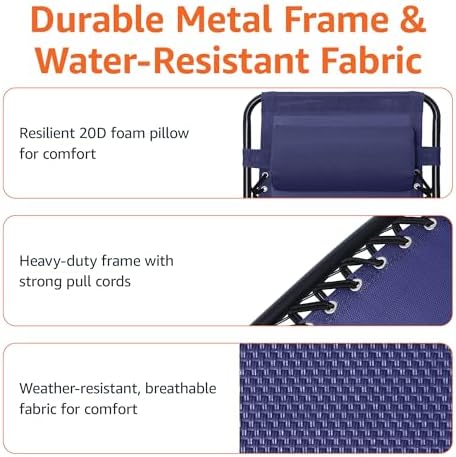 Amazon Basics Outdoor Patio Zero Gravity Lounge Chair with Pillow, Folding Reclining and Textilene Adjustable, Folding Lounge Lawn Chairs for Outside, 26", Blue