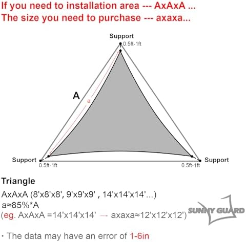 - 【Measuring Dimensions】Measure and clean the area where the Sun visor is to be installed. Leave a margin of 0.5-1 feet between the fixing point and the sunshade sail to install hardware/hooks or ropes. (Please refer to the measurement pictures we provided).Due to the characteristics of this material, the finished product may have a deviation of ± 4 inches.