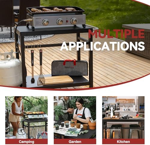- Multifunctional: This worktable can be used indoors as kitchen island table; outdoors as BBQ grilling table, grill cart, griddle stand, pizza oven stand, food prep station, potting bench and so on