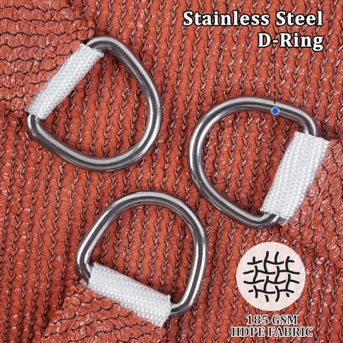 - High-Quality Construction: Made with 185 gsm high-density polyethylene (HDPE) shade fabric; features well-stitched seams and sturdy stainless steel D-rings in each corner for lasting durability
