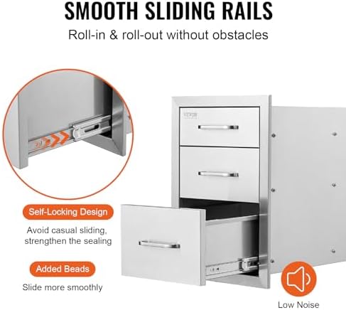 VEVOR 18x23 Inch Outdoor Kitchen Stainless Steel Triple Access BBQ Drawers with Chrome Handle, 18 x 23 x 23 Inch