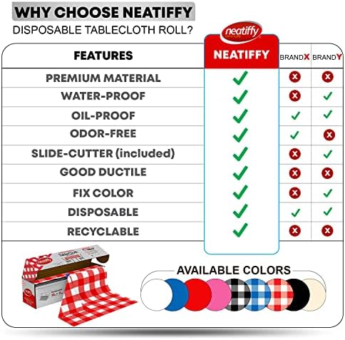 - ✔️SLIDE-CUTTER FOR CUSTOM LENGTH: Cut to suit your preference and party needs! Each roll of picnic tablecloth is equipped with a slide cutter, allowing you to create a perfectly sized plastic cover for Rectangle, Square, Round or Oval tables. Our covers are neatly rolled in a box, so you can cut as much as you need while keeping the rest for later.