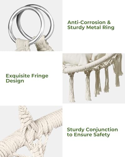 Greenstell Hammock Chair, Macrame Swing Chair with Comfy Cushion, Boho Hanging Chair for Outdoor & Indoor, Perfect for Bedroom, Patio, Balcony, Hold up to 330Lbs, Beige