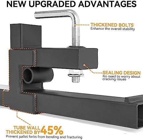 - 【Convenient and Adjustable Stabilizer Bar】When your forks spread too far apart, it makes pick up bales or logs more difficult. Use adjustable stabilizer bar to conveniently prevent your forks from spreading apart, your problem can be solved. Use the width adjustment knob to determine your desired distance. The stabilizer bar can be adjusted from 18' to 34' W.