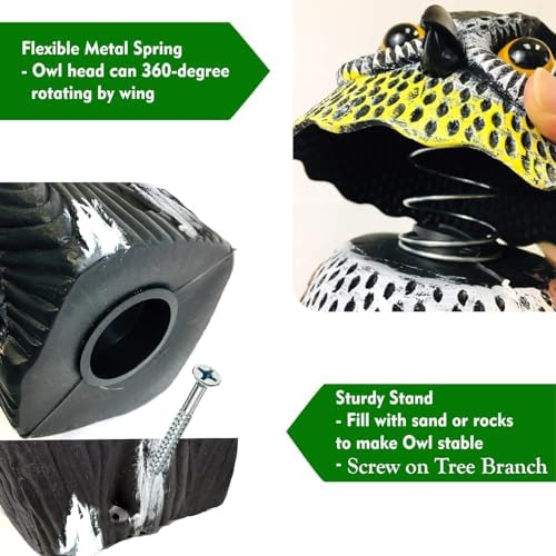 - 🦉 ROTATING HEAD - Owl's freely rotating head is easy shaking and rotating by wing to mimic natural movements of an owl. Must insert plastic wind vane into back of the owl's head to ensure that the head will rotate.
