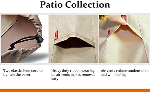 - ✅Two adjustable draw-strings tighten easily resulting in a custom-like fit.Structured air vents at two sides stay open to prevent wind lofting,and are lined with mesh barriers. Waterproof, and breathable.The heavy duty ribbon weaving on air vents makes removal and adjustment of your cover convenient and hassle-free