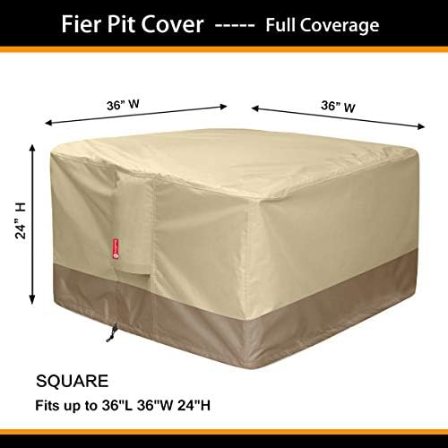 SheeChung Gas Fire Pit Cover Square 600D Heavy Duty Patio Outdoor Fire Pit Table Cover with PVC Coating 100% Waterproof,Air Vent,Fits for 33/34/35/36 inch Fire Pit Table Cover 36”L x 36”W x 24”H Beige