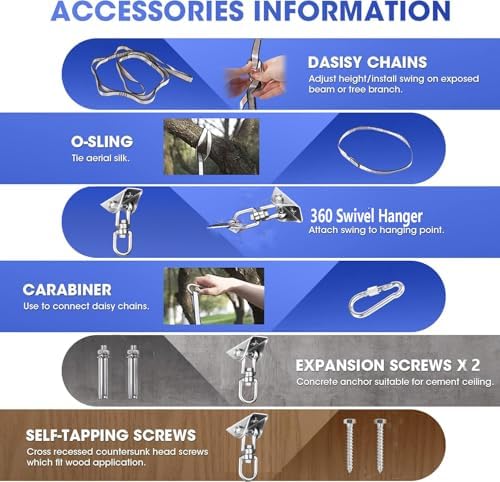 - [ALL HARDWARE INCLUDED &EASY USE] This indoor sensory swing comes with extra accessories, including daisy chain, O-sling, carabiner, 360° swivel hanger, expansion screws x2 and self-tapping screws x2. And you can refer to the installation video or the instruction which is attached with the product, so that the installation will be very easy.