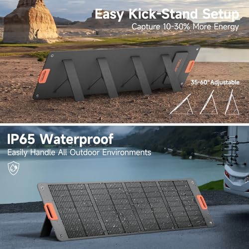 - 【Ultimate Durability: Weather-Resistant and Waterproof】The back of our solar panels is made from high-density polyester canvas, offering excellent wear resistance, dust resistance, and high-temperature resilience. Combined with a highly durable ETFE laminated case, this design enhances outdoor durability and extends the lifespan of the panels. With an IP65 waterproof rating, they can withstand a variety of outdoor environments, ensuring reliability for all your outdoor activities.