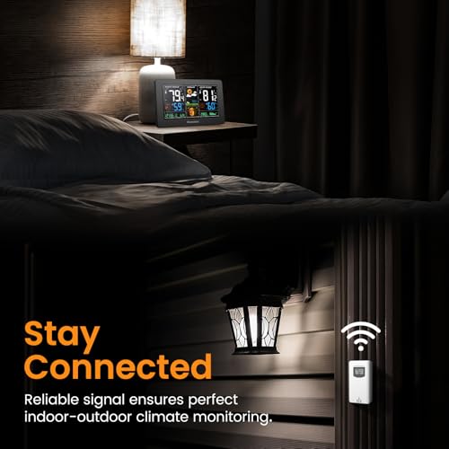 - [7.5' LCD Screen Weather Stations] Newentor temperature&humidity monitor with large color display, which shows comprehensive information: inside outside temperature humidity(max/min, hi/lo), customizable alerts, time/date, alarm clock/snooze, weather forecast (next 8-24 hrs) moon phase, barometric pressure.