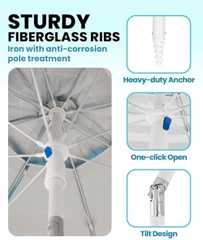 - Ideal Spot for Sunshade: This beach umbrella is made of high-quality 160G polyester with an advanced PU silver coating—superior to standard PA-coated canopies. Relax under the beach sunshade, soak up the breeze, and stay protected from harmful UV rays.
