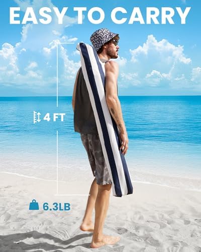 OutdoorMaster Beach Umbrellas for Sand with Sandbag & Anchor, 6.5ft Adjustable Umbrella for Beach Heavy Duty Wind, Portable UPF50+ Sunshade with Carry Bag for Patio, Navy Striped