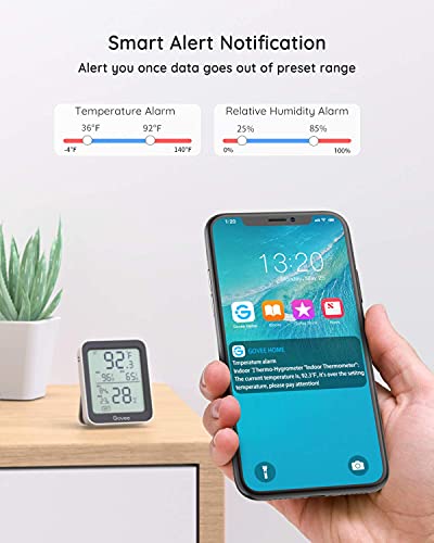 - Smart App Alert: You'll receive a notification alert once the temperature or humidity is out of preset range. It can help you effectively adjust the situation of your home, garage, baby nursery, room, wine cellar, basement or other places in time.