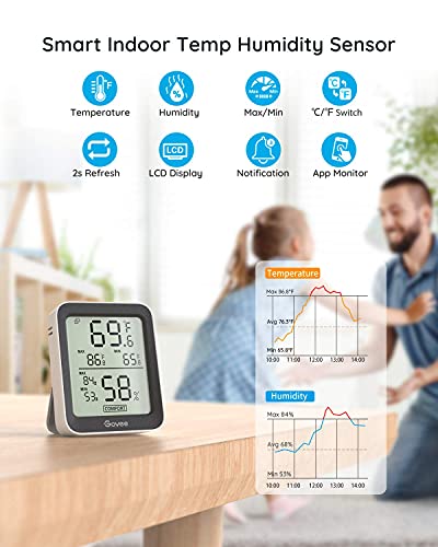 - Easy to Use: Simply download the Govee Home app, search for and select H5075, and pair the room thermometer hygrometer successfully within minutes. With a 196ft/60m Bluetooth range, you'll be notified of any temperature humidity changes immediately.