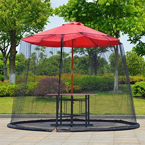 7.5-11 FT Patio Umbrella Mosquito Net, Polyester Mesh Umbrella Screen, Universal Canopy Umbrella Mosquito Netting with Zipper Door and Adjustable Rope, Fit Outdoor Umbrellas and Patio Tables