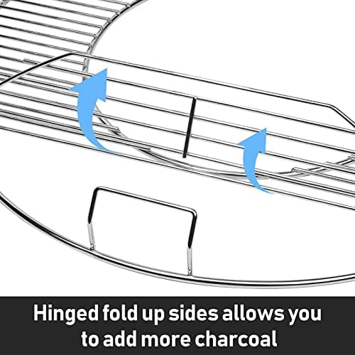 - 【Flexible Design】Hinged fold up sides allows you to add more charcoal without having to displace the food or remove the grate