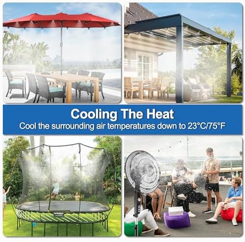 - 【 Beat the Heat Instantly — Drop Temps by 20℃/68℉】The patio misters for cooling outdoor let Instant summer relief in seconds! The misters for outside let you and your family, Pets (dogs, cats, chickens), Livestock (cows, sheep, goats) and plants enjoy outdoor comfort even on scorching days. The water misters safe & gentle cooling outdoor for all living beings.