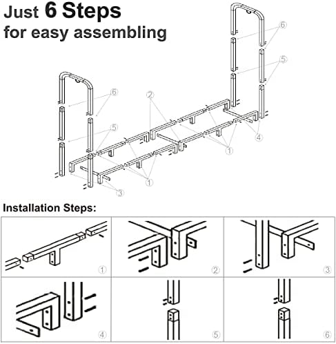 - The 8 feet firewood storage holder is made of heavy tubular steel construction with a double black powder-coated finish, optimal durability, sturdy, rustproof and weather fastness. You can put it in any hot, cold, warm, or dry climates and hold enough wood for fireplace all seasons.