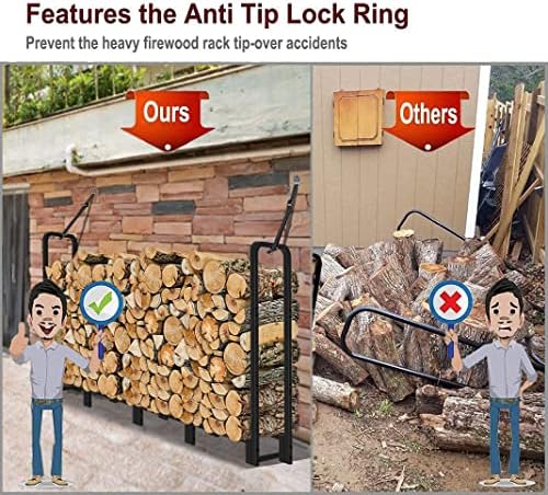- Features 2 lock rings and 10 solid rack legs, that means we take more care for the safe of your families. Secure the rack reliably and effectively prevent tipping over of the heavy firewoods, which could otherwise result in serious injuries and even fatalities in the case of babies, children. Just lock up the rack with extra straps and put the rack on a hard surface.