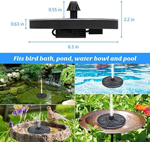 - MUTIPLE APPLICATIONS: Just put in the water, the pump will start to work in 3s once exposed to sufficient sunlight, perfect for bird bath, fish tank, small pond, pool, garden decoration, water circulation for oxygen. (Solar fountains does not store energy, may not work on cloudy days, please make sure the product is used in direct sunlight, and it is recommended to use it in clean water, which will prolong the life of the product
