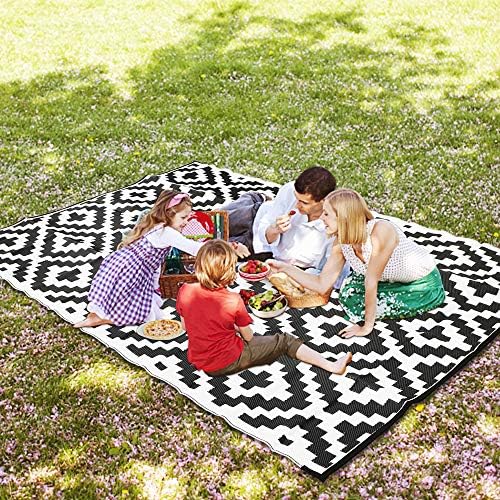 - EASY CLEANING & PORTABLE: For a quick clean simply sweep away dirt with water and airing it dry. Reversible outdoor rugs can be folded into compact size for easy storage, it comes with a carrying bag for added convenience. Suitable for an afternoon outing or an RV road trip.