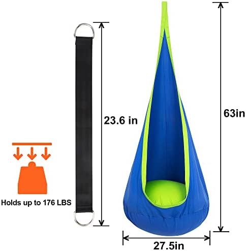Y- STOP Kids Pod Swing Seat, Hanging Hammock Chair with Inflatable Pillow, Sensory Swing Chair with Pocket for Outdoor and Indoor, Max 176Lbs (Blue and Green)