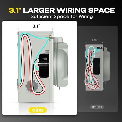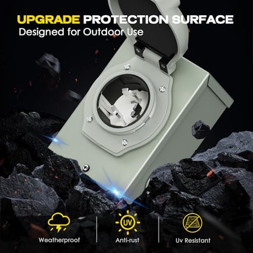- Weatherproof & Anty-rust: The front entry inlet has a weatherproof spring cover which closes when not in use to protect the inlet from the elements. The surface of the power inlet box with anti-corrosive powder-coat paint which can resist weather damage like rain, UV, will not rust