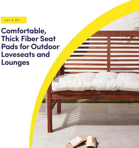 Sweet Home Collection Patio Chair Cushions Outdoor Loveseat Lounge Seat Pads Premium Comfortable Thick Fiber Fill Tufted 44" x 19", 1 Count (Pack of 1), Cream