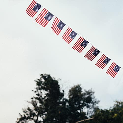 - Perfect Size: Each American flags are 5.5 inch wide and 8.2 inch long, Each string is approximately 18 feet long with 20 flags, a total of 2 series . the flag rope is firm, and the spacing between flag is neat