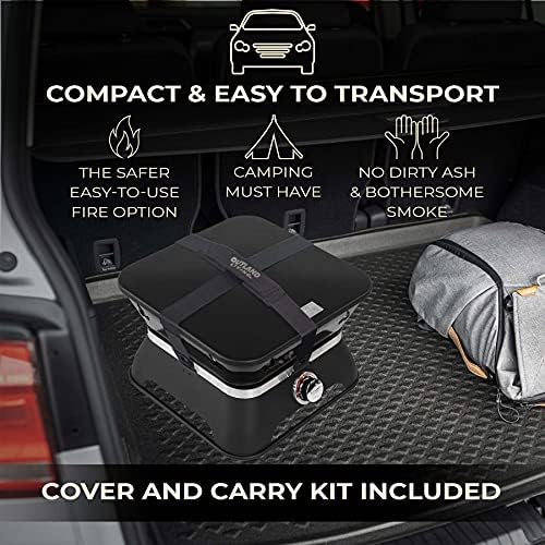 Outland Living Firebowl 805 Firecube 14” Portable Square Smokeless Propane Fire Pit – Outdoor Gas Fire Pit with Cover & Carry Kit, Lava Rocks, 58,000 BTU, Black