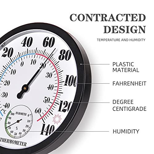 Indoor Outdoor Thermometer Large Numbers Wall Thermometer Hygrometer Waterproof Does not Require Battery 10 inch Wireless Hanging Hygrometer Garden Decoration (Black)